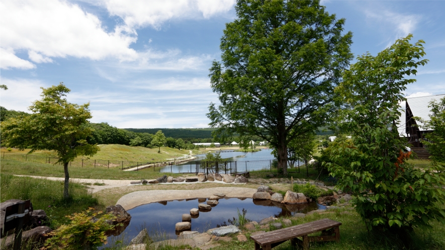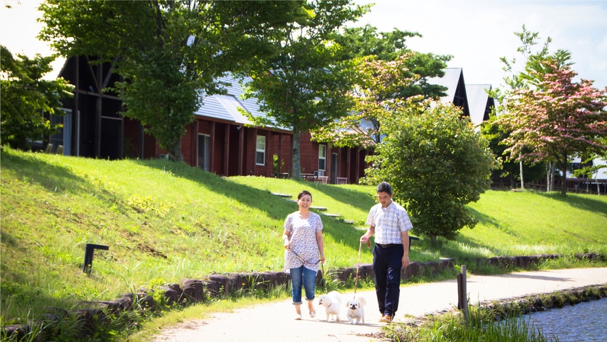 ハーブ園や森林、湿地園、湖畔などお散歩コースが満載です。さらにノーリードで散歩してもOKなドッグウォークも用意されていて、愛犬が自由に動き回れます。リードでつながれていないのでストレスも無く開放的に動ける場所です。