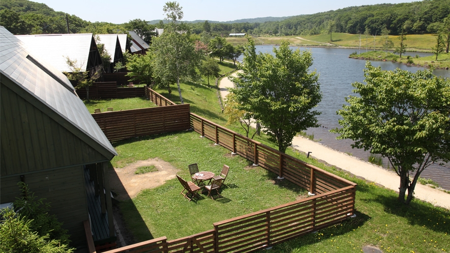 湖をのぞむことができる特等席タイプのコテージです。ゆったりと過ごすことができ、広々としたドッグランで愛犬を遊ばせることができます。